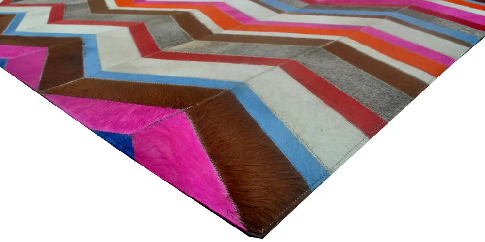 Modern Loom Multi-Colored Patterned Leather Rug 6