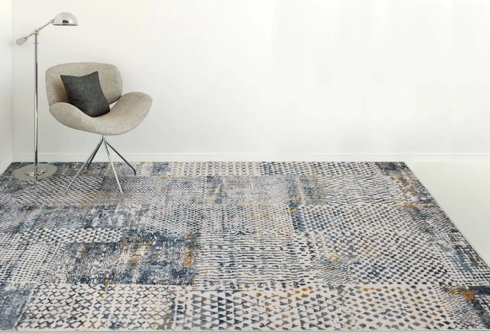 cro-3_blue | Modern Loom Cairo Multi-Colored Power Loomed Synthetic Rug