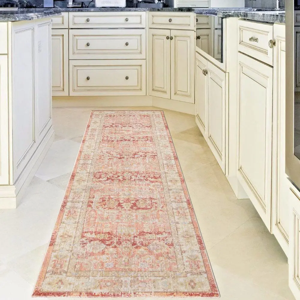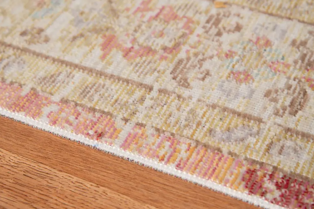 If youre looking for a classic and timeless designer rug, youre in the right place. Flaunting a refreshing color palette, this area rug is versatile enough to easily fit into any space in your home. Featuring a vintage, weathered look and a super low pile, youll love both its design and craftsmanship. Power-loomed in Turkey with 100% polyester yarn, this rug is perfect for high-traffic areas or homes with children and pets.
