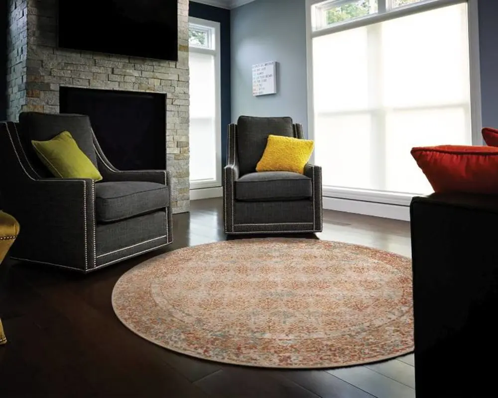 Looking for a new area rug for your great room or living room? Keep in mind that the area rug should fit slightly under the front of the sofa, and allow your guests to walk around your coffee table comfortably (typically a 2’ to 3’ space around the coffee table works).