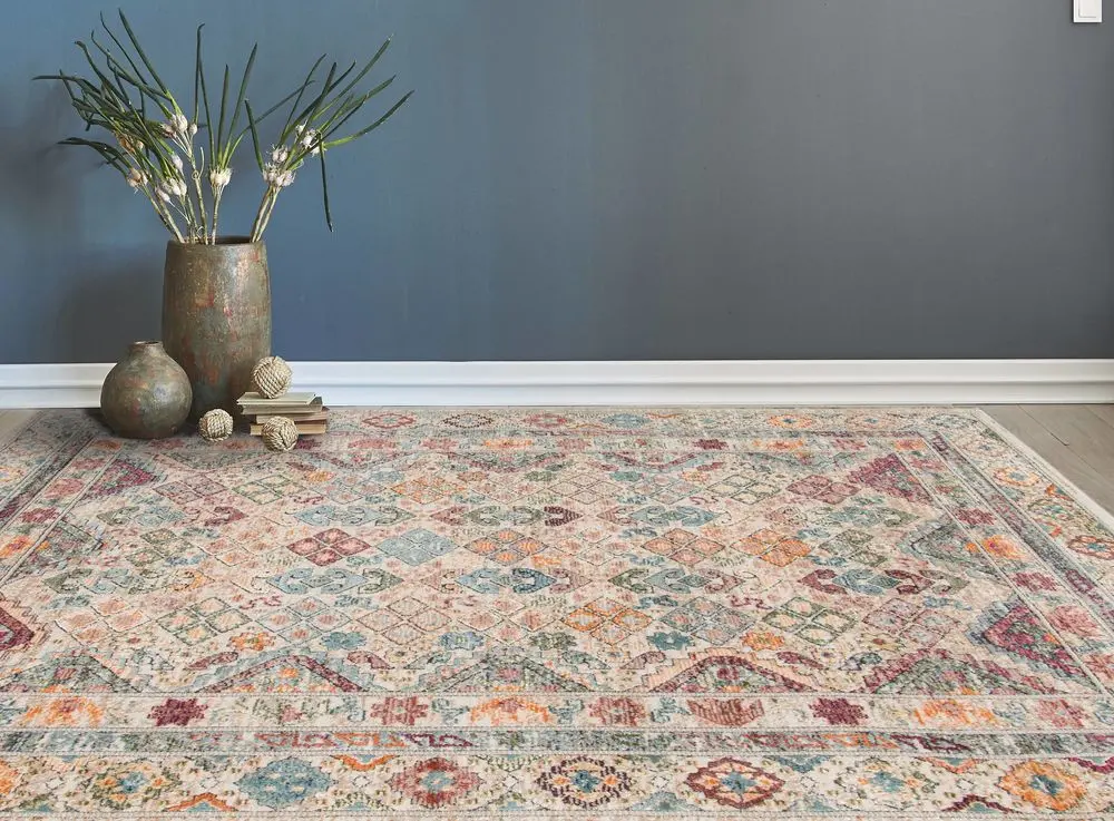 xav-11_beige | Modern Loom Xavier Multi-Colored Power Loomed Synthetic Rug