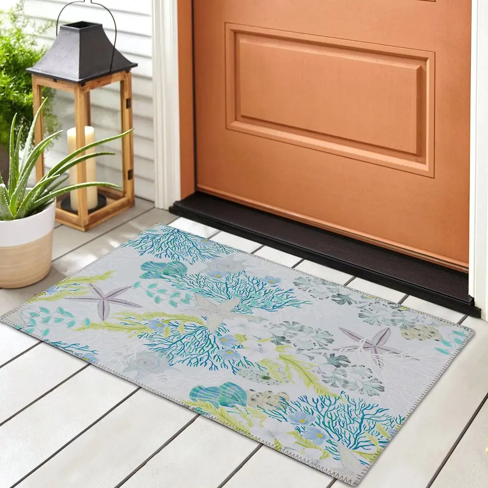 Remarkable Seabreeze collection has been created to inspire tranquility. Wow your guests with these versatile casual coastal rugs, stylish flat weave rug features vibrant colors with gradient movement in a variety of natural beach mosaic shapes and patterns. Featuring an ultra-soft and ultra thin pile, each rug is made with 100% polyester pile complete with a non-skid backing. Final crafting in USA using domestic processing on an imported substrate. They are UV Stabilized for indoor and cover outdoor spaces. Shake out or use straight suction with vacuum, do not use a beater bar. Machine washable in cold water and air dry, some sizes may be too large for a residential washing machine and is family and pet friendly.
