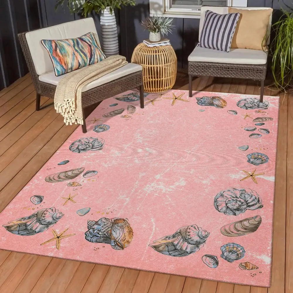 Remarkable Seabreeze collection has been created to inspire tranquility. Wow your guests with these versatile casual coastal rugs, stylish flat weave rug features vibrant colors with gradient movement in a variety of natural beach mosaic shapes and patterns. Featuring an ultra-soft and ultra thin pile, each rug is made with 100% polyester pile complete with a non-skid backing. Final crafting in USA using domestic processing on an imported substrate. They are UV Stabilized for indoor and cover outdoor spaces. Shake out or use straight suction with vacuum, do not use a beater bar. Machine washable in cold water and air dry, some sizes may be too large for a residential washing machine and is family and pet friendly.