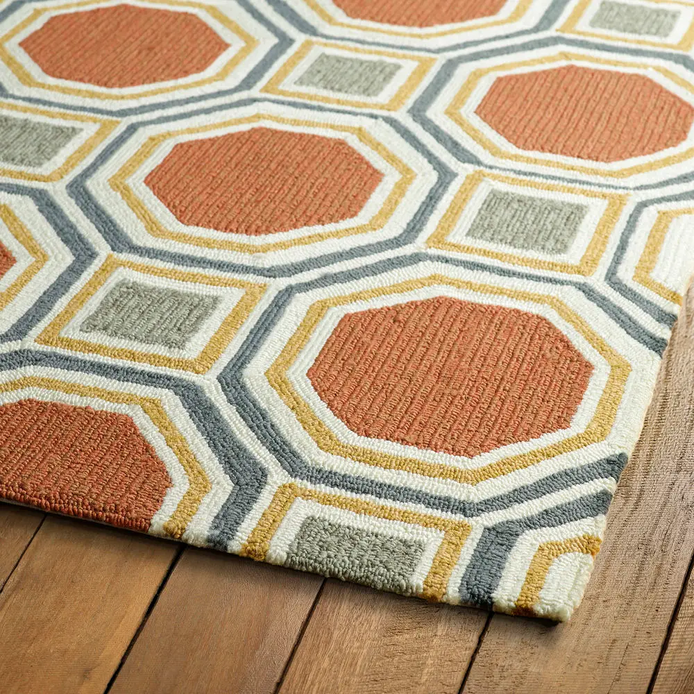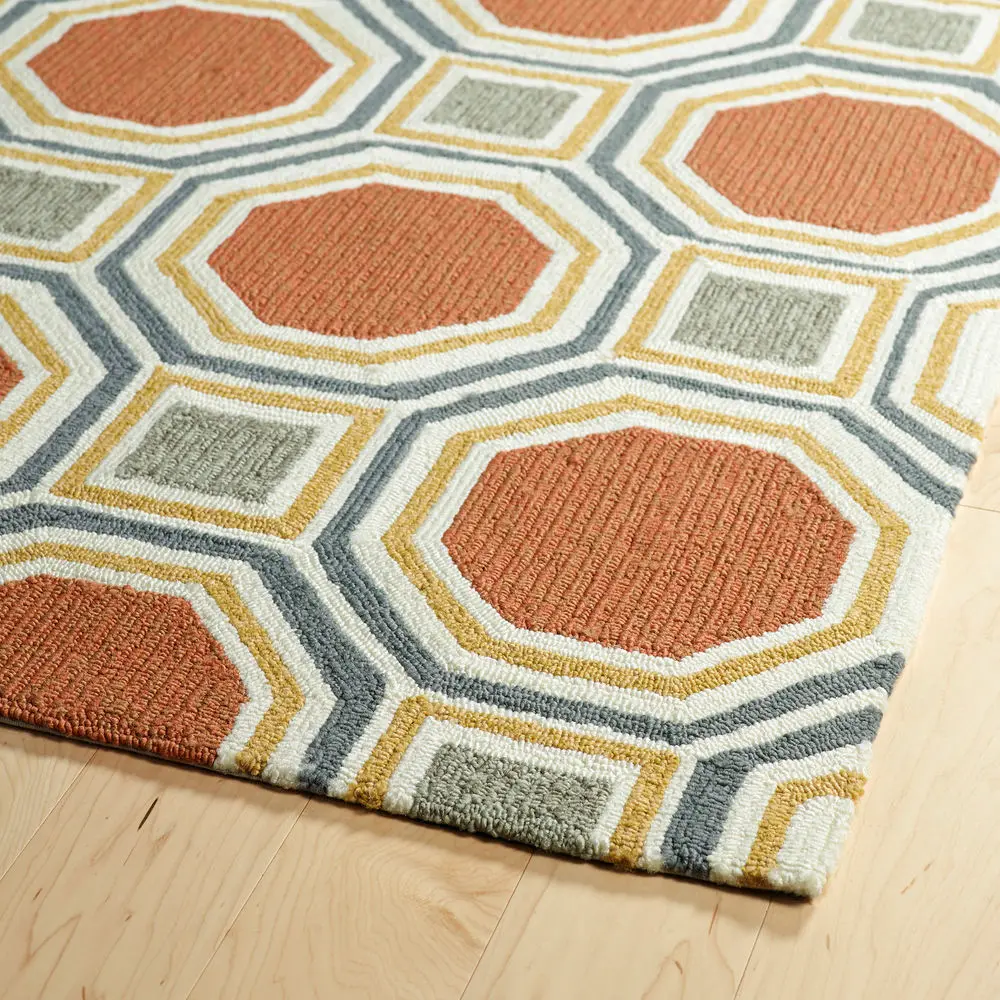 We seldom have octagon shape rugs. You should consider a round or a square one instead. Contemporary rugs do not lend themselves to that particular shape. Unless using contemporary shag rugs. This style has a very dense wool pile and the design blends in with any décor style.