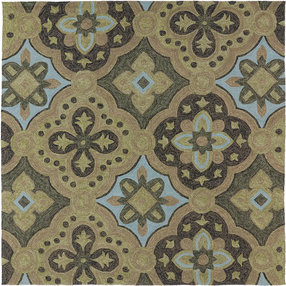 Habitat 2100-60 Rug: The specific colors of this rug include Chocolate Brown, Black, Olive, Sage, Sky Blue, Spa Blue.
