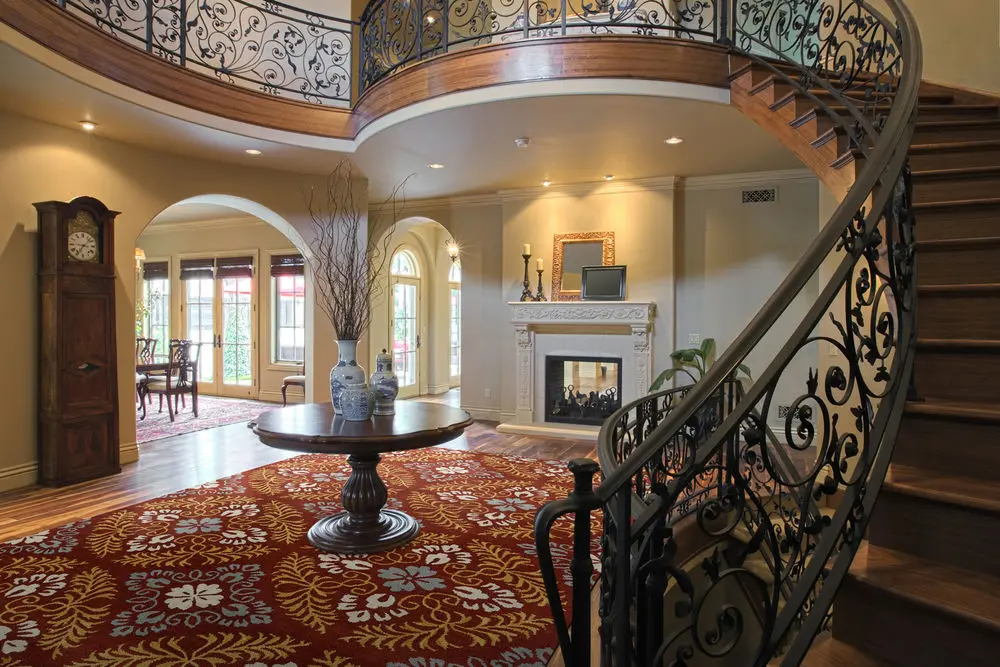 Looking for a new area rug for your great room or living room? Keep in mind that the area rug should fit slightly under the front of the sofa, and allow your guests to walk around your coffee table comfortably (typically a 2’ to 3’ space around the coffee table works).