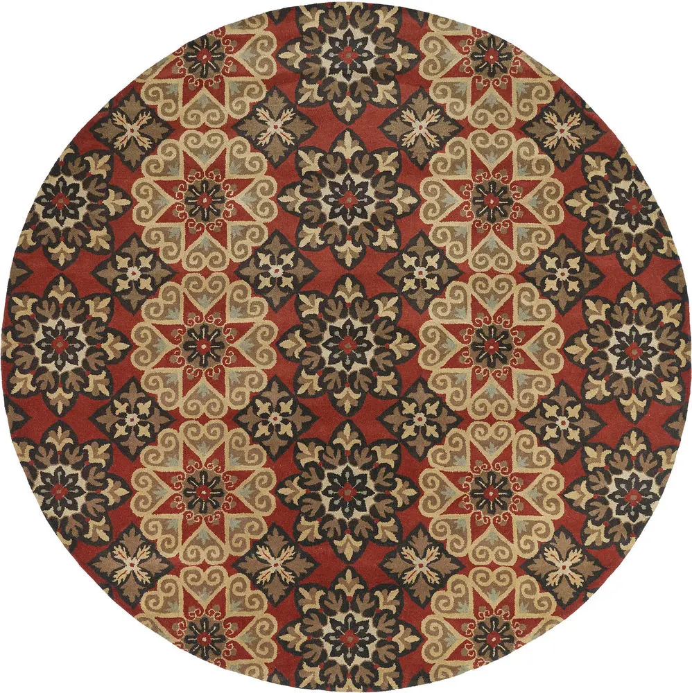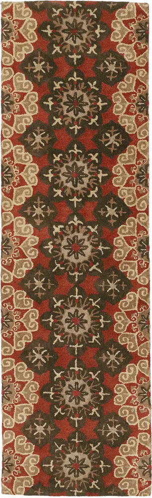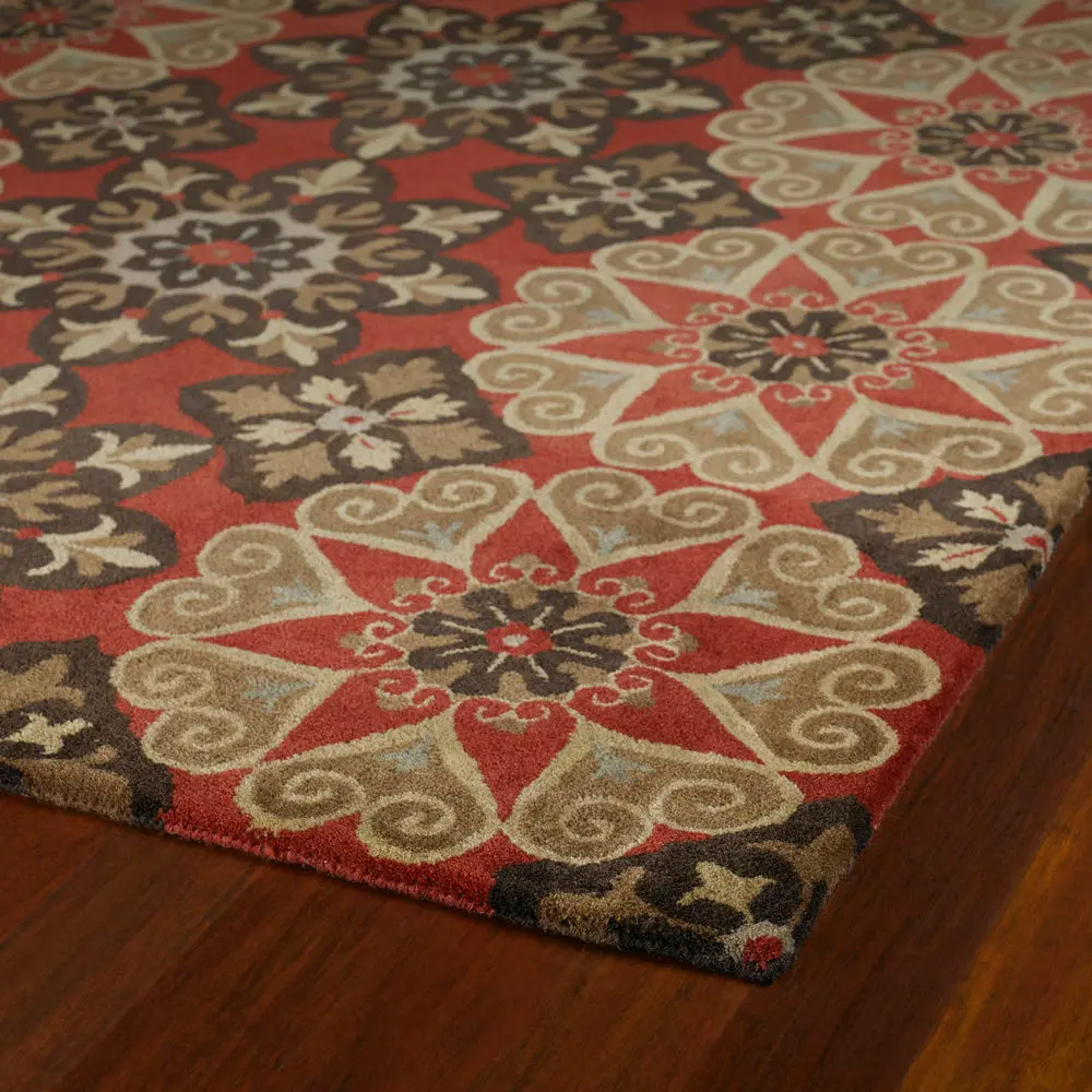 Mystic 6049-57 Rug: The specific colors of this rug include Raspberry, Dark Chocolate Brown, Milk Chocolate Brown, Olive Green.