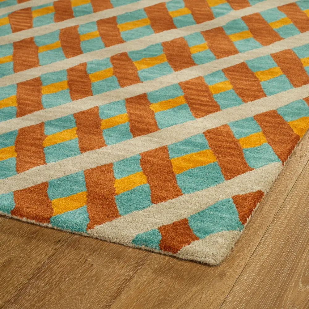 Pastiche PAS04-86 Rug: The specific colors of this rug include Teal, Orange, Paprika, Grey.