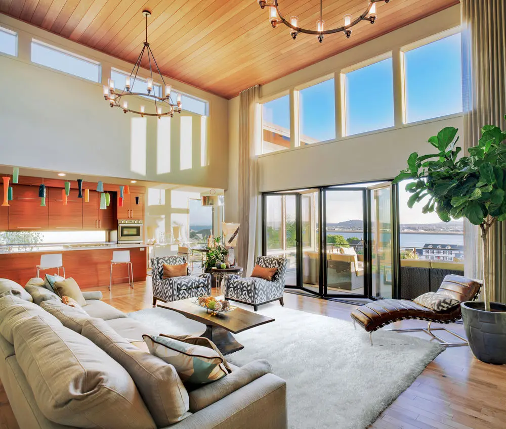 Looking for a new area rug for your great room or living room? Keep in mind that the area rug should fit slightly under the front of the sofa, and allow your guests to walk around your coffee table comfortably (typically a 2’ to 3’ space around the coffee table works).