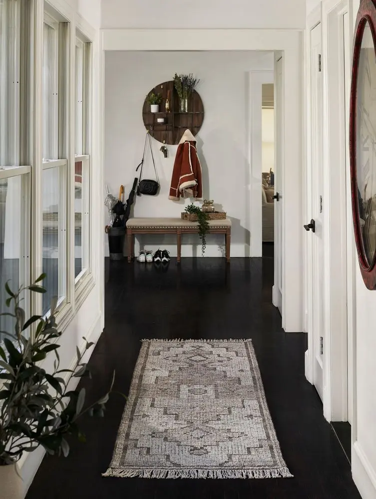 Looking for a new area rug for your great room or living room? Keep in mind that the area rug should fit slightly under the front of the sofa, and allow your guests to walk around your coffee table comfortably (typically a 2’ to 3’ space around the coffee table works).