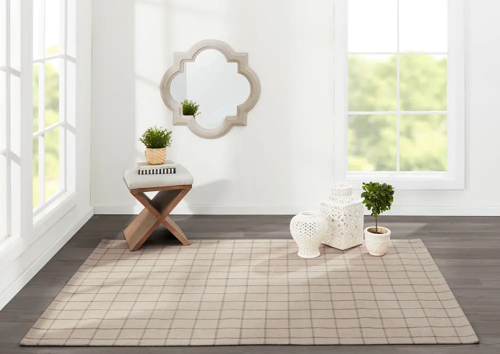 Suited for floors in traditional and modern spaces, this decorative area rug assortment is an interior design staple for well-dressed décor. Tailored textile patterns take on new forms with toned down tartan plaid and windowpane check in sophisticated shades of blue, gray and ivory. Hand woven from 100% natural wool fibers, the uses classical prints and an elegant color palette to create an enduring floorcovering with timeless appeal.
