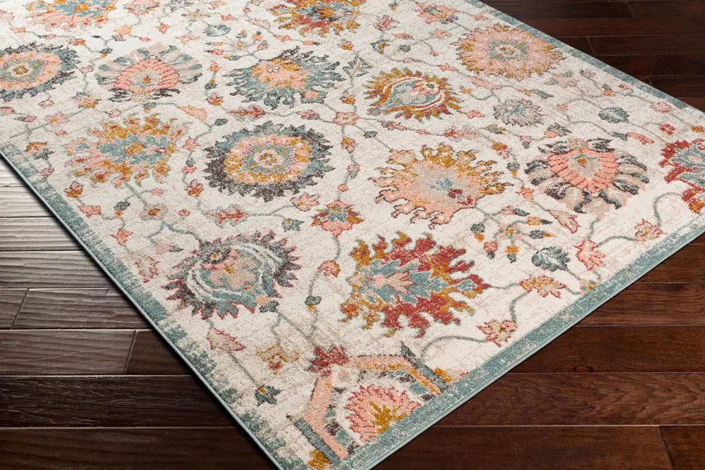 Attributes: floral, synthetic, 100% polypropylene, traditional