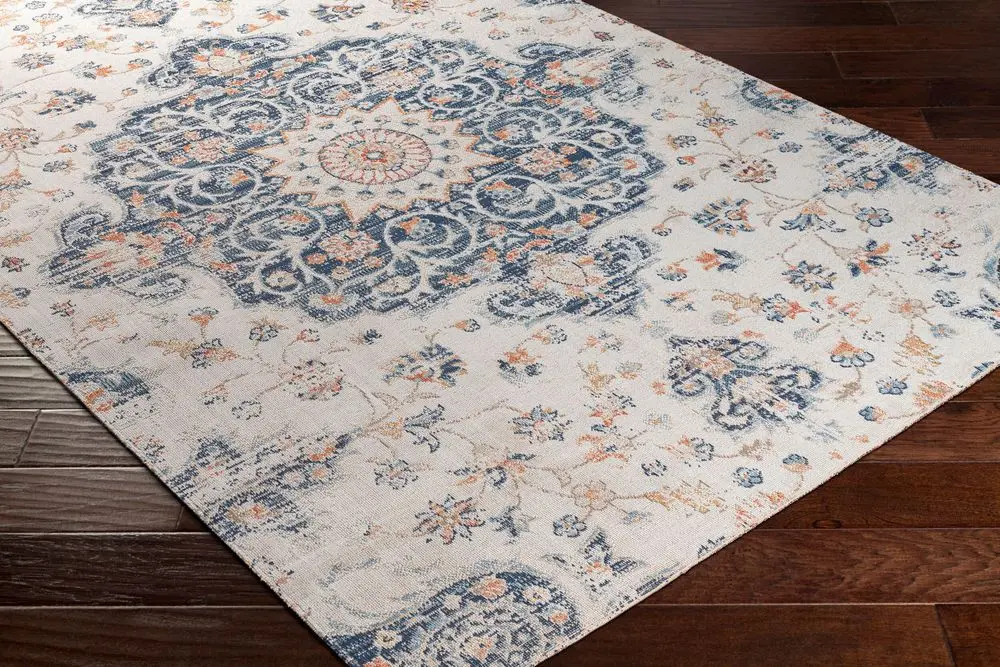 The Huntington Beach area rug provides a luxurious update to traditional style. Its Polyester construction ensures a durable, yet soft feel and is designed to withstand high traffic areas. The machine woven design is made in Turkey and features no pile for a contemporary look that won't wear down over time. It's also outdoor safe, so you can enjoy the beauty of this rug all year round! For extra cushioning and stability, we recommend using a rug pad with your purchase (sold separately). To keep it looking new, spot clean with mild detergent as needed.