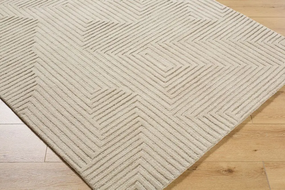Indulge in the exquisite allure of the Brook handmade rug, a spectacular representation of Art Deco Modern style. This magnificent piece is carefully hand tufted from authentic wool, sourced directly from India, providing an unrivaled blend of comfort and sophistication. The medium pile offers a plush, soft feel underfoot, making it an excellent choice for high-traffic areas or cozy spaces where you love to relax barefoot. To ensure longevity and maintain its stunning appearance, professional rug cleaning is recommended. We also suggest pairing this rug with a suitable pad to prevent slipping and sliding. Add a touch of refined elegance to your home decor with our Brook handmade rug!