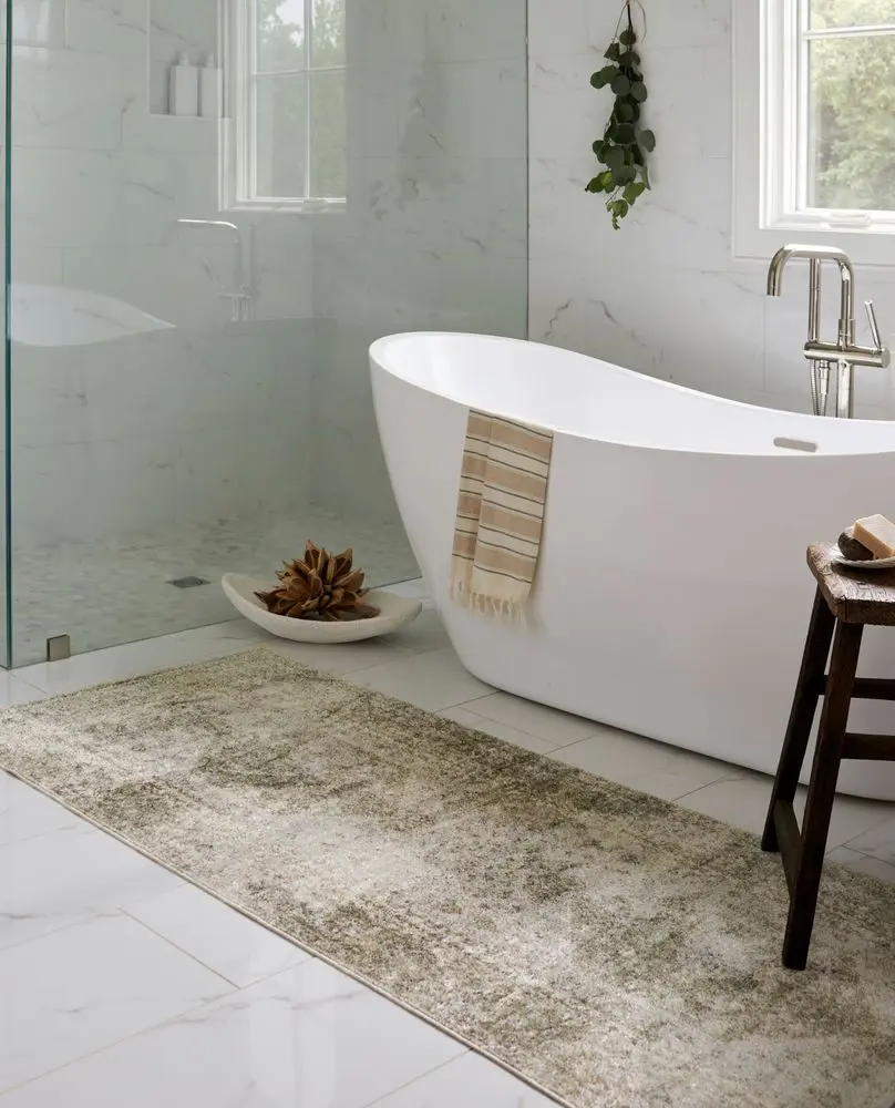 Looking for a new area rug for your great room or living room? Keep in mind that the area rug should fit slightly under the front of the sofa, and allow your guests to walk around your coffee table comfortably (typically a 2’ to 3’ space around the coffee table works).