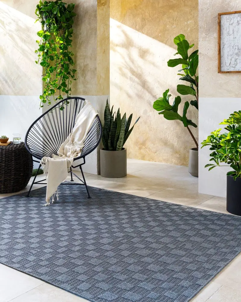 Introducing the Sandra Collection, a splendid addition to your indoor or outdoor living space. Manufactured in Turkey, this area rug is machine woven from polypropylene, resulting in a no-pile design that stands up to high traffic areas with ease. Its stunning style can beautifully transform any space, providing an elegant touch wherever you place it. As practical as it is chic, this rug is outdoor safe and easy to care for - simply hose off with water and hang to dry when needed. To ensure optimal performance and longevity, we recommend use with a rug pad. Give your home the upgrade it deserves with the Sandra area rug collection!